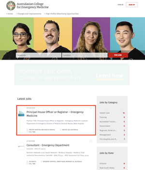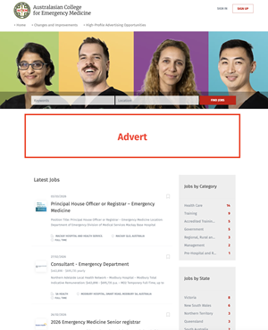 The ACEM Jobs Board is a dedicated website for advertising emergency medicine career opportunities which has 9500+ job views per month.