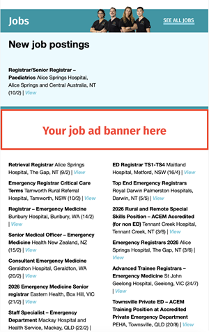 In addition to being listed on the ACEM Jobs Board, job advertisements will also be included in the College regular EDMs: