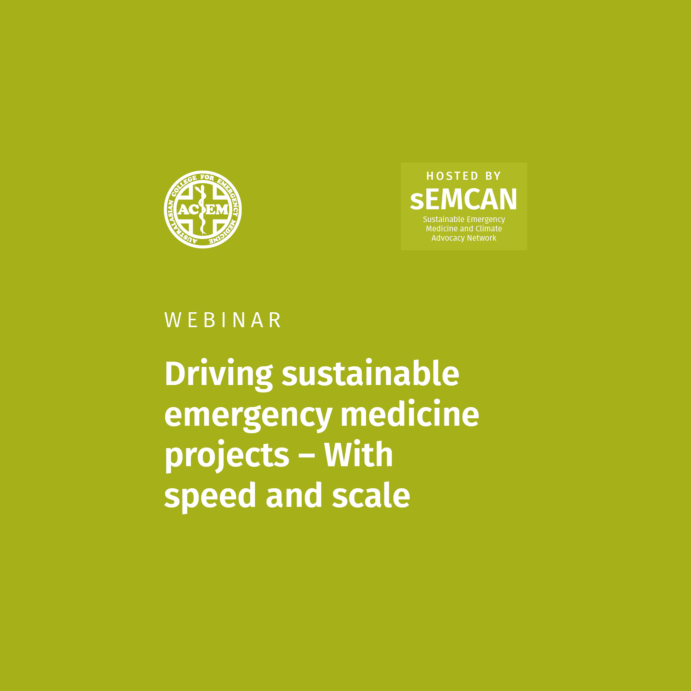 Join leading emergency medicine experts in this dynamic webinar hosted by the Sustainable Emergency Medicine and Climate Advocacy Network (sEMCAN), as we explore how we can drive sustainable change with urgency and scale, while maintaining the highest standards of patient care.